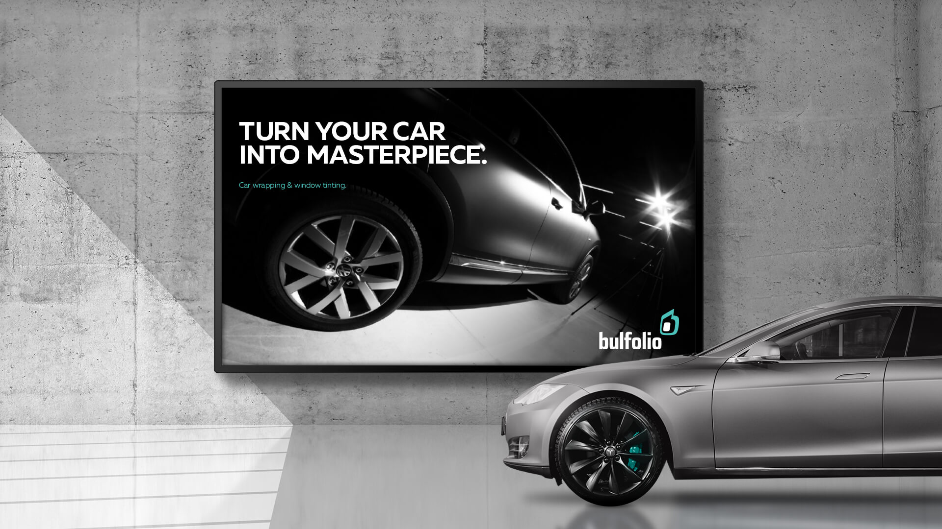 След проведено проучване сред клиентите на BULFOLIO установихме, че водещото предимство на клиента ни пред неговите конкурентите е предлаганото качество на работа и материали. Създадохме идентичност, която ясно подчертава позиционирането на бранда като лидер в сегмента на фолиране на автомобили и сгради. Творческият ни екип изгради и сет от корпоративни материали, презентиращи дейността на BULFOLIO в пълен блясък. По този начин изпълнихме задачата да облечем BULFOLIO в отговаряща на високите му стандарти идентичност.
