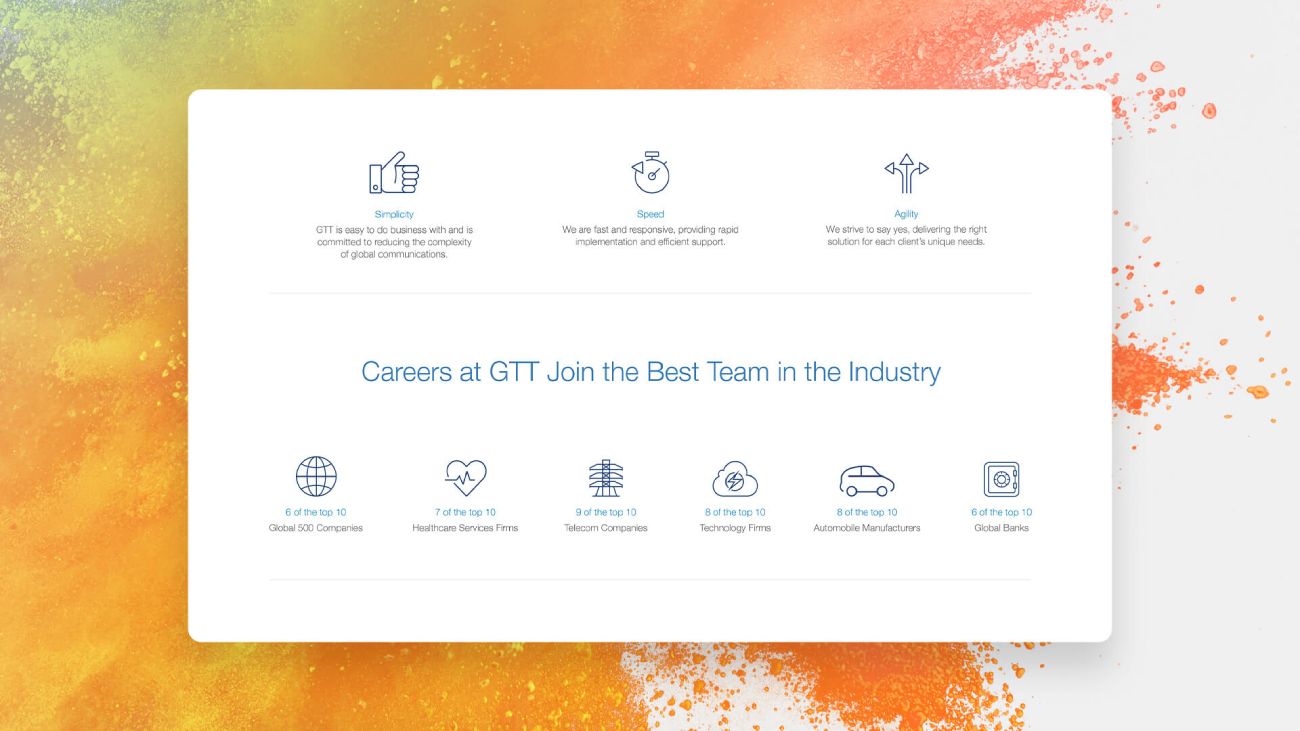 GTT са един от най-големите доставчици в световен мащаб на cloud услуги. През 2018 г. компанията придоби Interoute, собственици на една от най-усъвършенстваните мрежи за пренос на глас и данни в Европа.