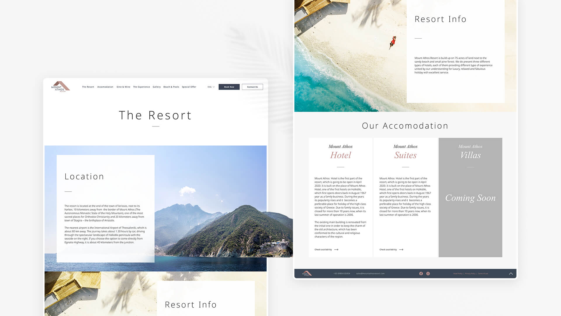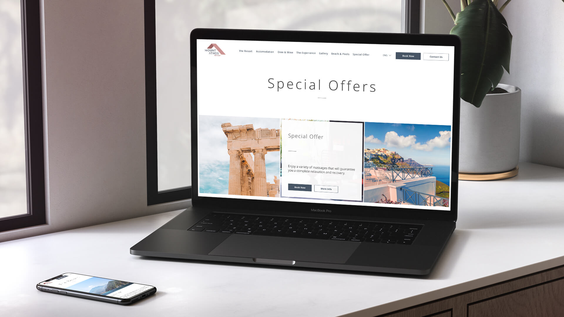 Ein Resort wie dieses benötigt eine entsprechende digitale Präsentation, die die luxuriöse Atmosphäre des Ortes in eine Online-Umgebung bringt. Unser Kunde beauftragte uns daher mit der Entwicklung der Website des Mount Athos Resorts.
